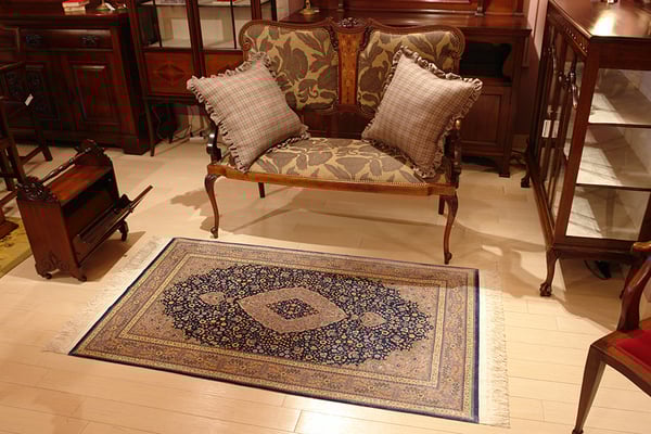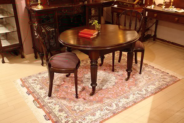 当店のペルシャ絨毯と家具のコーディネイション例を紹介します。クリックすると大きい画像になります。